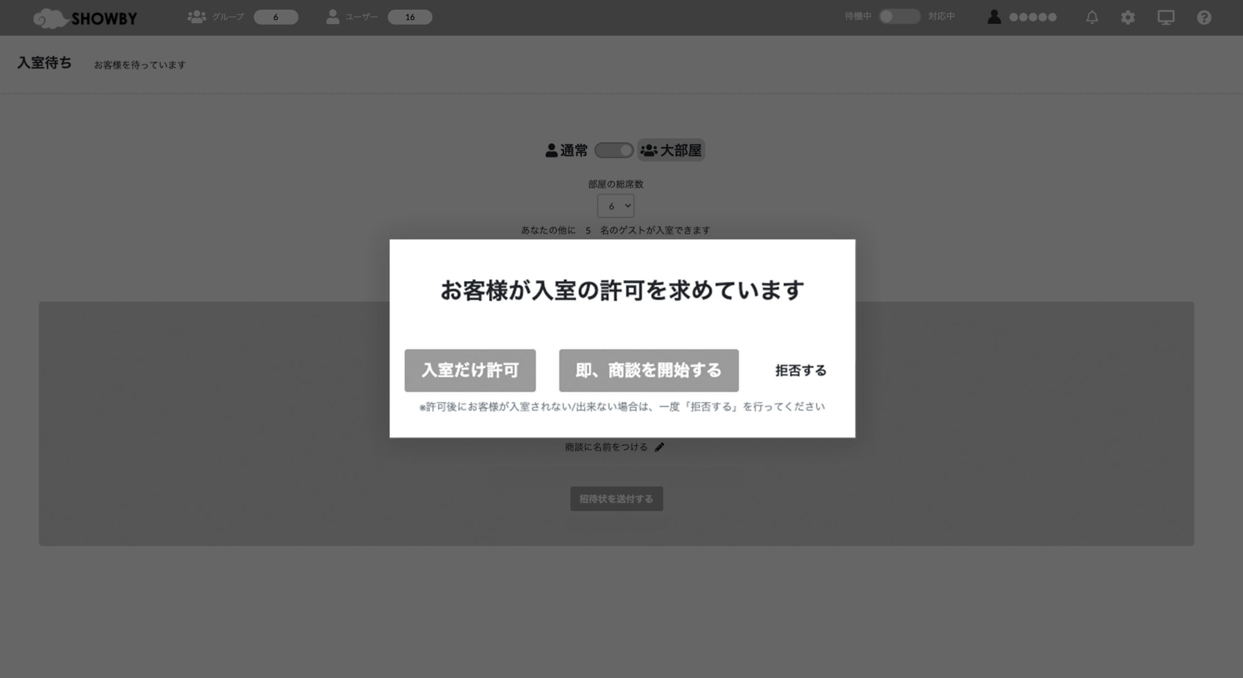 ここでは、大部屋モードでの会議・商談の始め方について説明します。